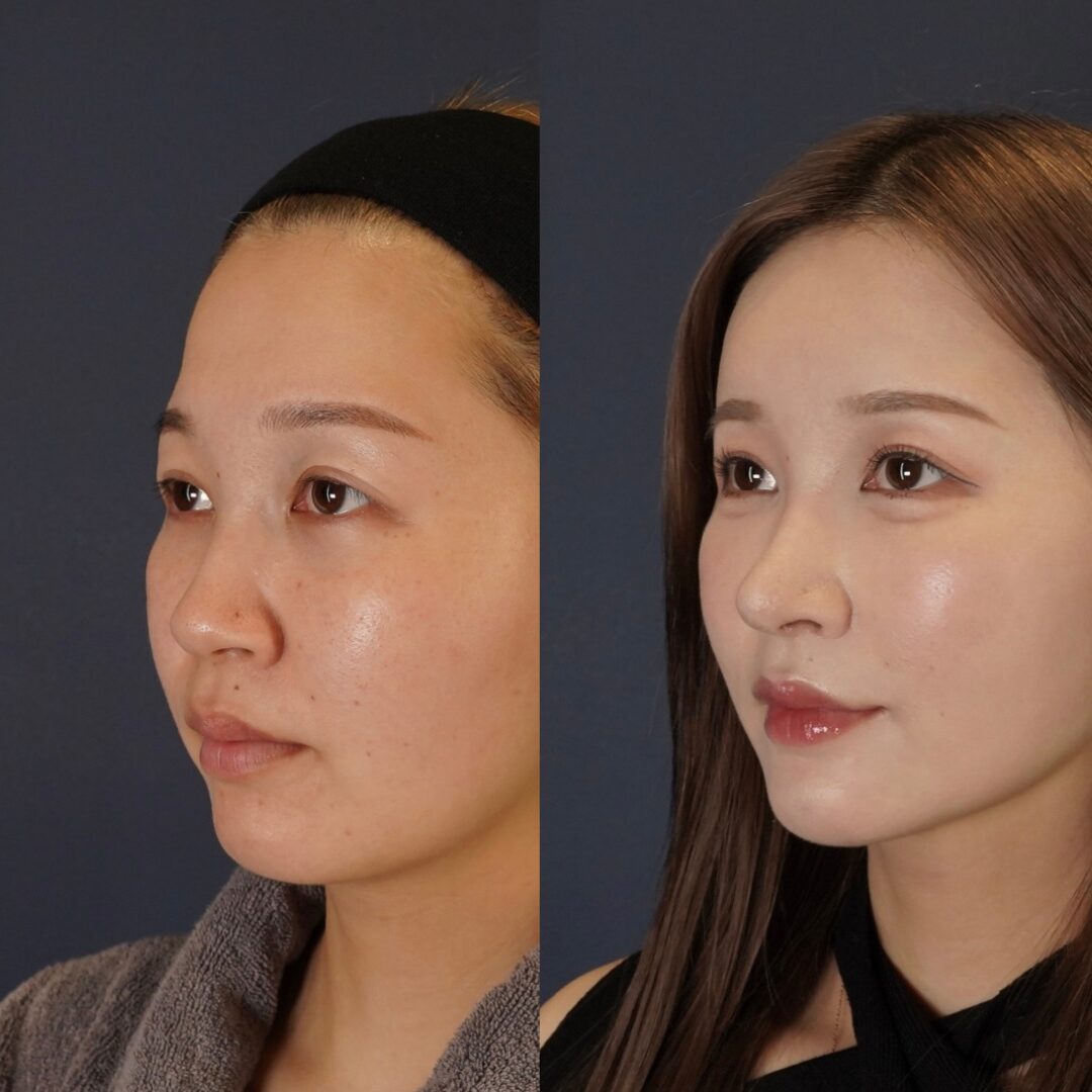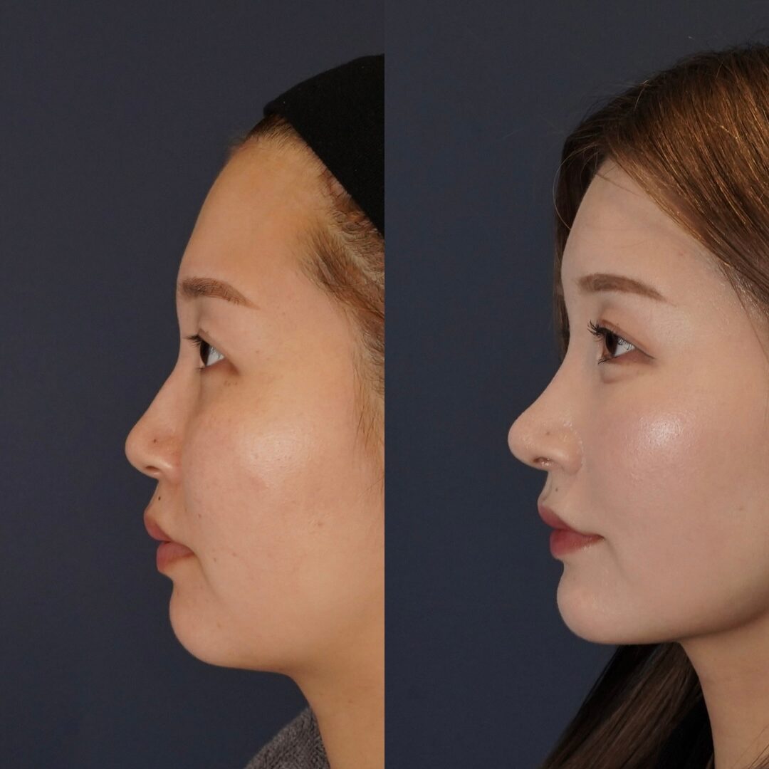 鼻中隔延長(耳介軟骨)、鼻尖形成、鼻翼縮小(内側)CRF脂肪注入(額、ゴルゴ、目の下)、サクションリフト、ヒアルロン酸:顎、涙袋