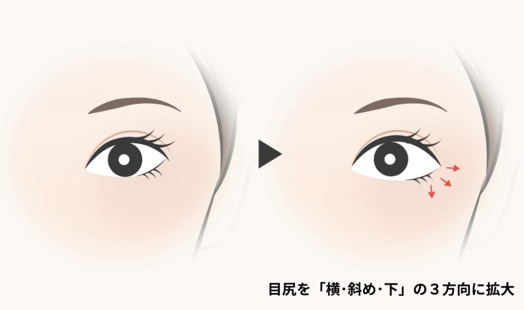 3WAY目尻拡大術とは、目尻を切開して外側に広げる手術です。